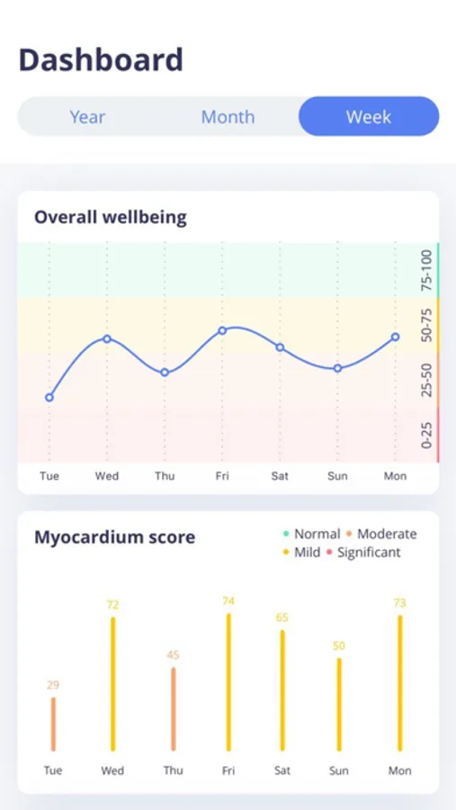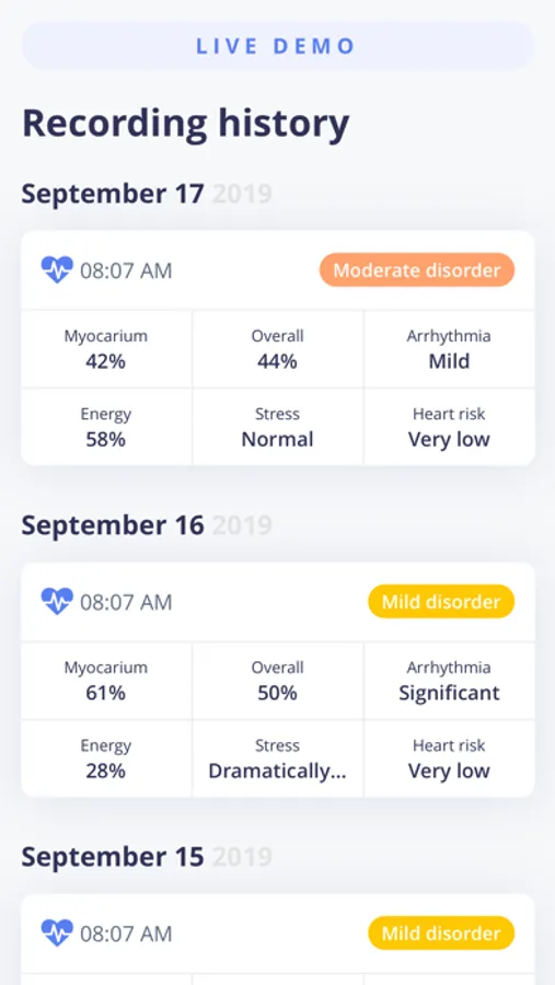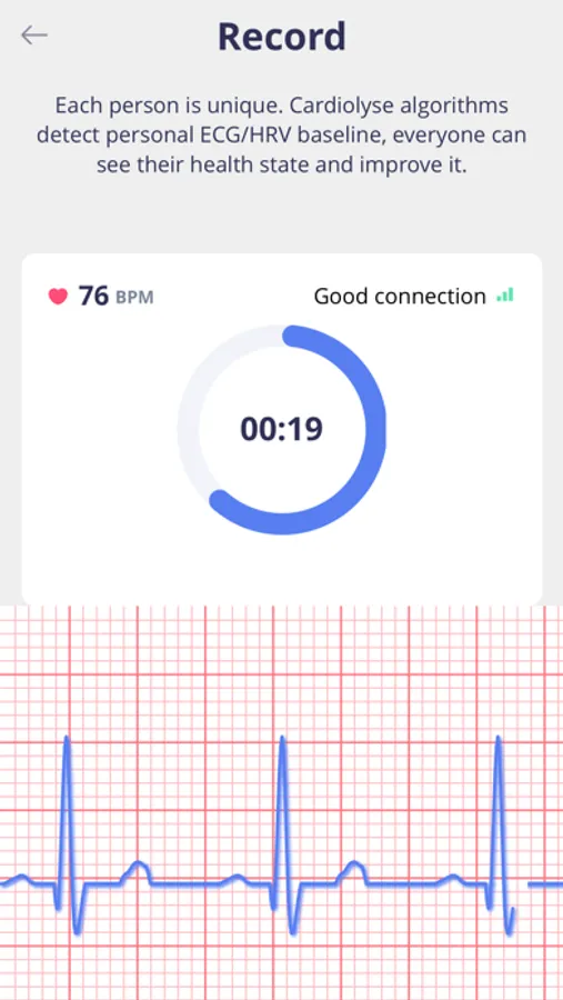 Cardiolyse Heart Health uses Heart Rate Variability and ECG analysis to understand your physiological state and define how your lifestyle (work, training, sleep schedule, etc.) influences you. HRV means the variation in time between consecutive heartbeats. It reflects how your body adapts to different situations and stressors. ECG is the measurements of electrical signals of your heart. It shows how healthy your heart is.