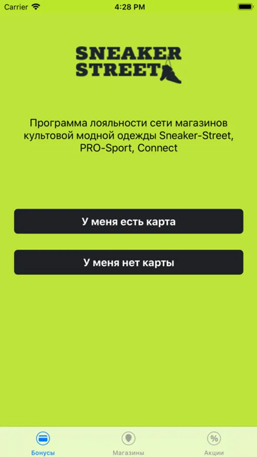 Приложение программы лояльности от компании Sneaker-Street