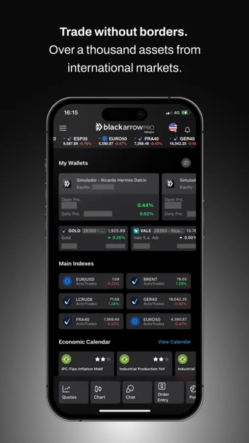 • Send OCO orders and use special features such as Trailing Stop and Auto Breakeven.