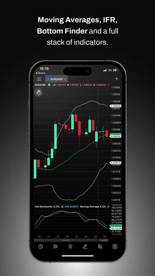 • Choose from a variety of professional charts to analyze the market, based on time and events.