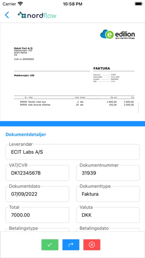 Additionally, the Edillion application provides a simple and flexible interface to the Edillion Approval flow. Simply swipe the entries to approve the invoices or direct it to other employees in your organisation.