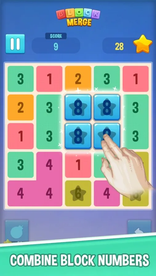 Merge the number block of the same color and they will increase by 1. Your target is 13 but you can definitely go further than that.