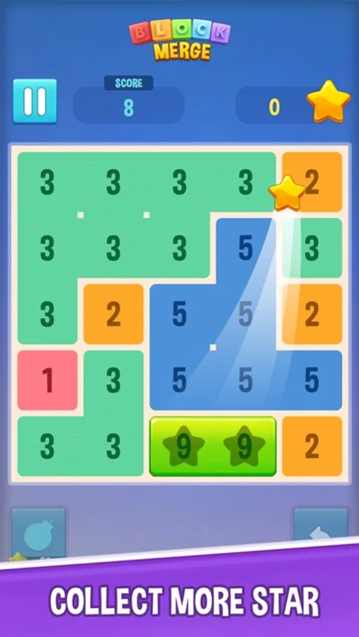 - All connected blocks of the same value and color will collapse onto the clicked block