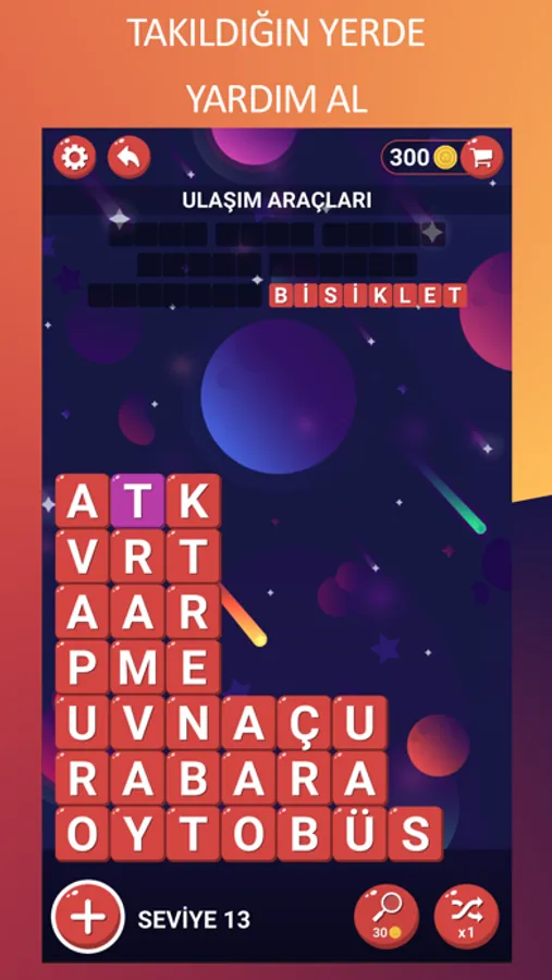 • Takıldığında yerde harfleri tekrar karıştır yada ipucu kullan.