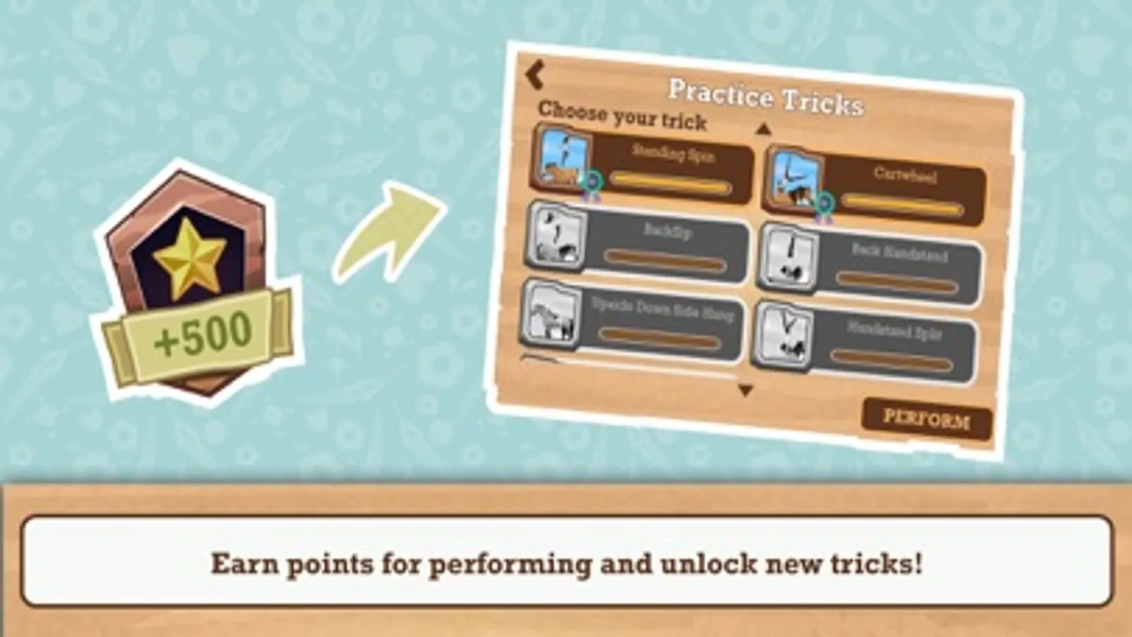 UNLOCK up to 11 different tricks from DreamWorks Spirit Riding Free to practice and perform: No Hands, Stand Up, Backflip even Jump through the Flaming Hoop