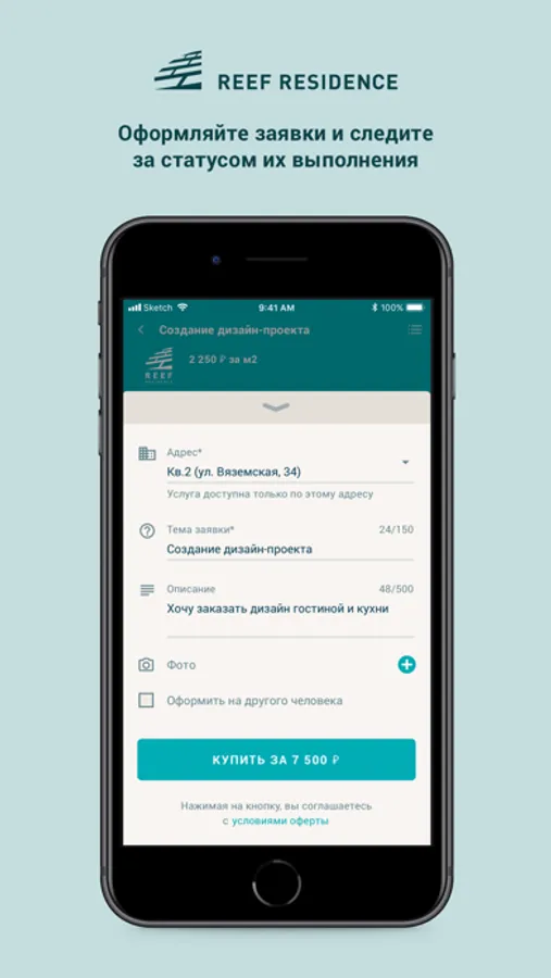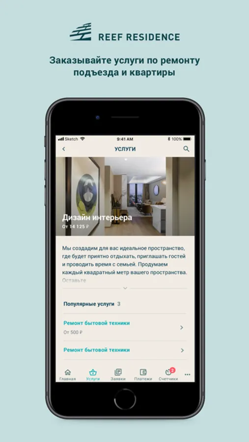 REEF Residence - это Ваш надежный помощник на территории резиденции. Все услуги эксплуатирующей организации в одном приложении.