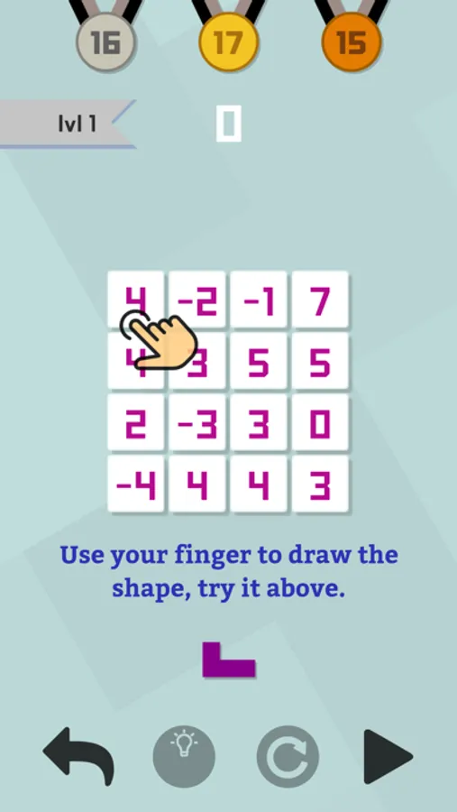 1. You draw each shape onto the grid by swiping your finger in the shape you want to make.