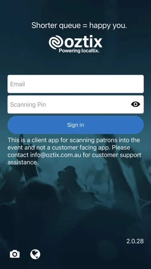 This is a client app for scanning patrons into the event and not a customer facing app. Please contact info@oztix.com.au for customer support assistance.