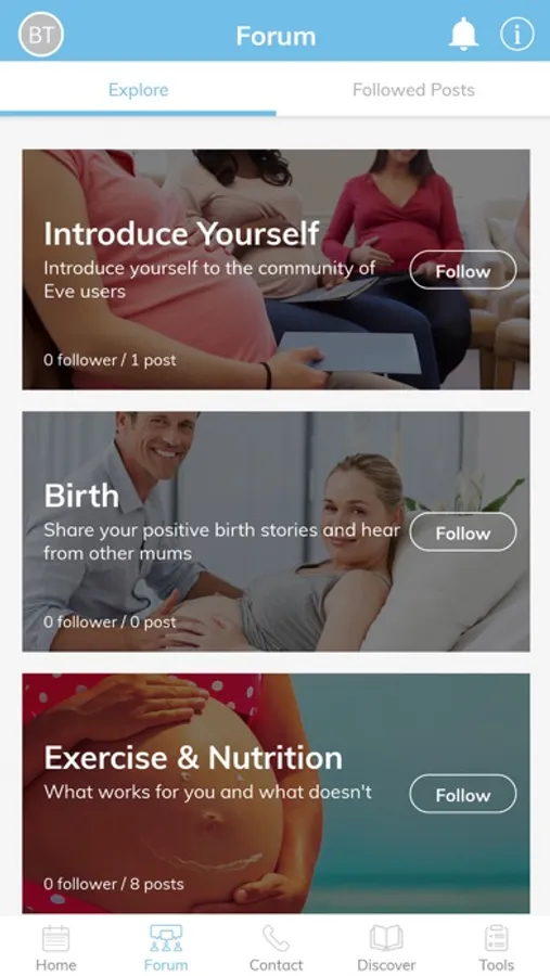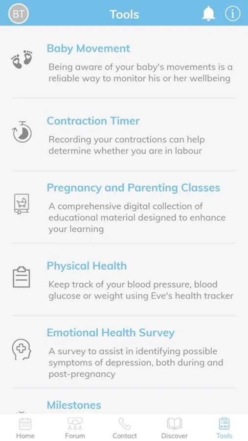 Eve provides a number of intuitive self-help tools to promote a digitally engaging pregnancy experience where users can: