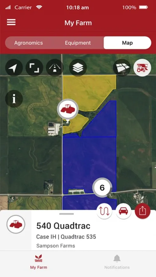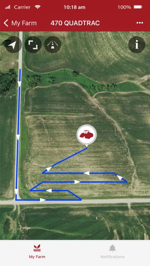 - Get a bird’s eye view of your farm, view field boundaries and receive turn by turn directions to fields