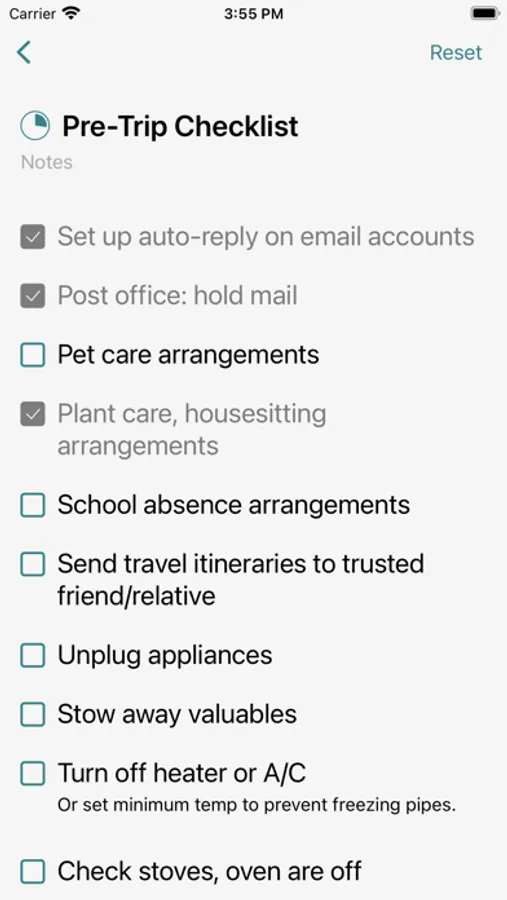 Use also for recurring checklists, like packing lists, shopping lists, work stuff, or video game grinding.