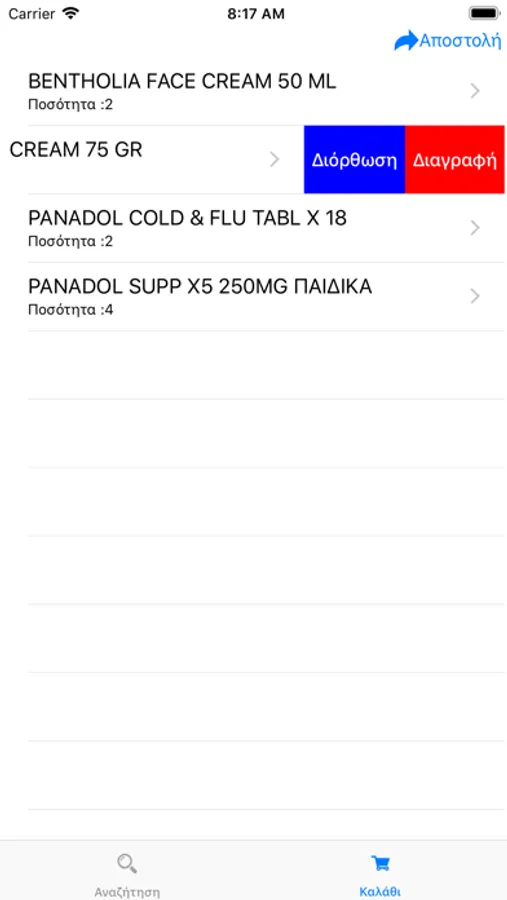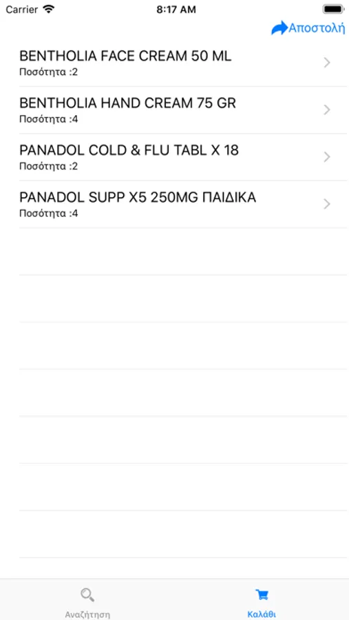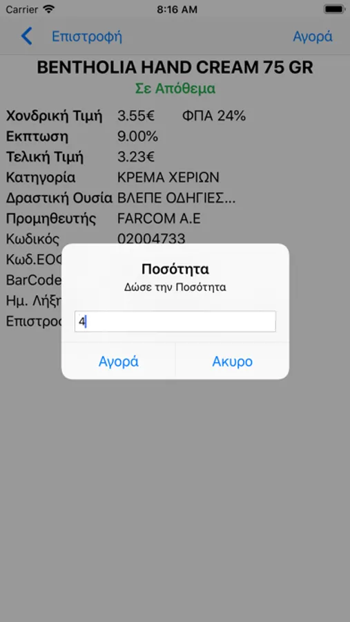 Με την χρήση της εφαρμογής μπορεί να γίνει δημιουργία και εκτέλεση της παραγγελίας του φαρμακείου σας σε πραγματικό χρόνο καθώς και να ενημερωθείτε online για τιμές, επάρκεια αποθεμάτων και πλήθος άλλων πληροφοριών σε περίπου 20000 ενεργούς κωδικούς προϊόντων (φάρμακα & παραφάρμακα).