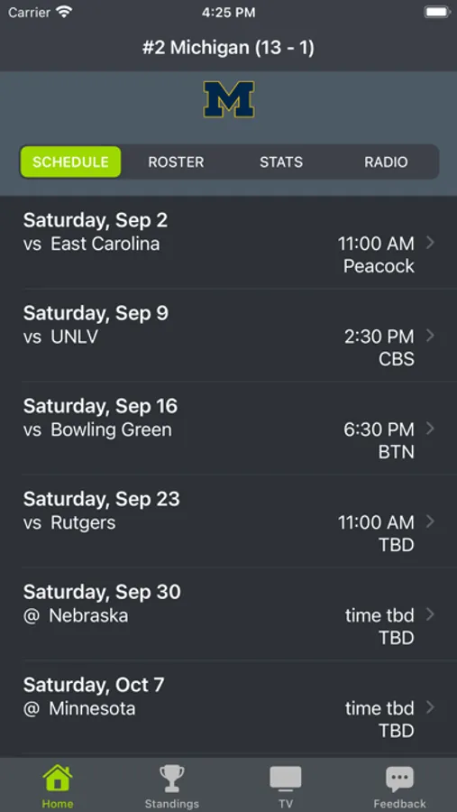 "...love the TV schedule. No longer have to look at my cable guide to look at my game schedule during College Game-day."