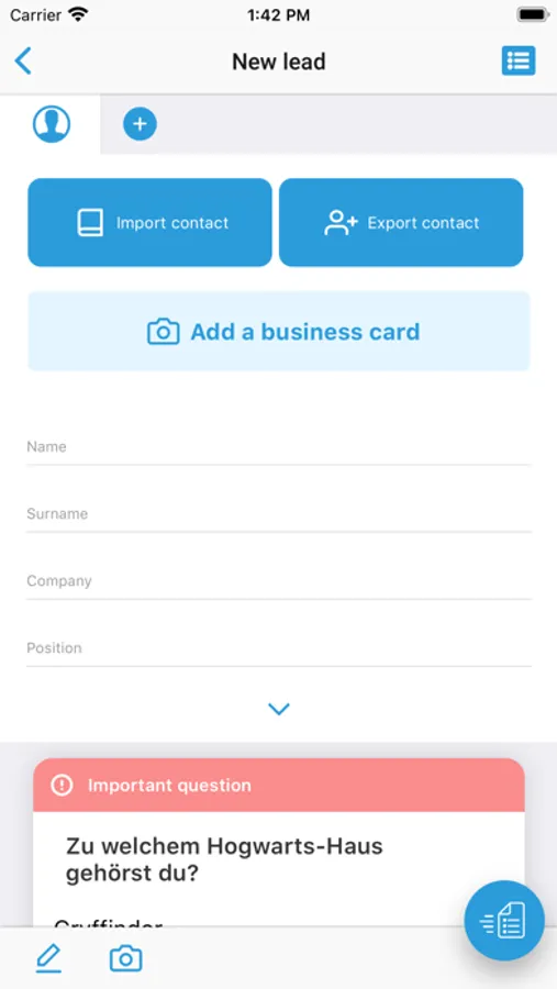 Just take a quick photo of the buisiness card and the OCR-Reader does the rest. Additionally our team in the back follow up with a final data check to guarantee you reliable lead information to start your sales process as quick as possible.