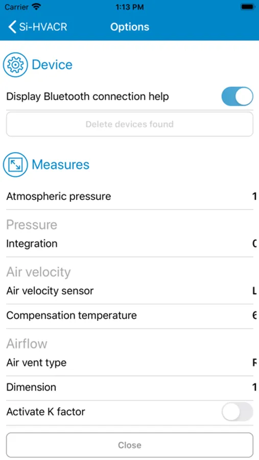 Si-HVACR Measurement MobileApp relays the following measurements: