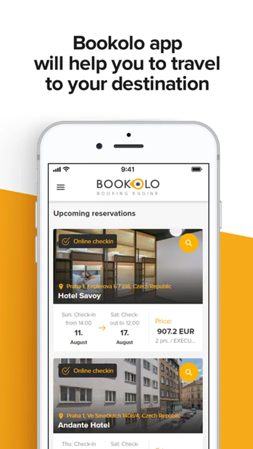 Always keep your reservation close at hand. Bookolo app will help you to travel to your destination, speed up check in at the hotel, allow you to edit or cancel your booking online. No more paper-based booking confirmation. Everything easy and online.