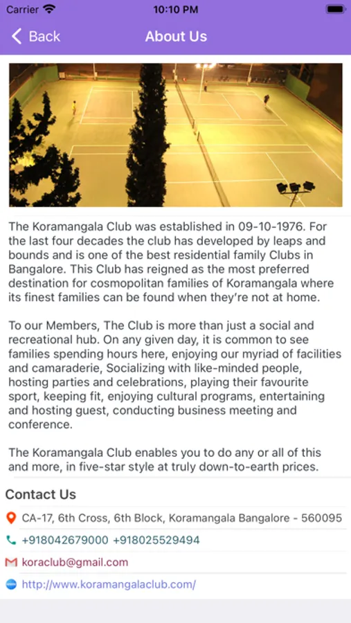 The Koramangala Club was established in 09-10-1976. Reg.No.67/78. Over the past 39 years, the club has developed by leaps and bounds and is one of the best residential family Clubs in Bangalore. Situated strategically in the IT corridor, it boasts of elite members including Shri Nandan Nilenkeni, the UID project chief and founder of Infosys.