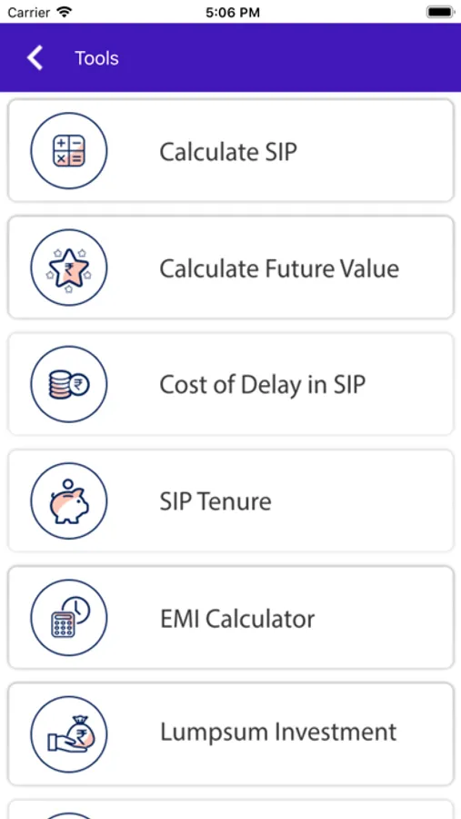 7. Calculators: Contains different financial calculators for your help.