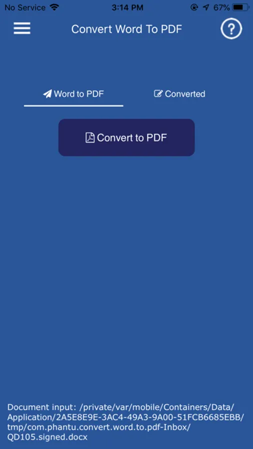 The application allows you to convert your DOC or DOCX files to PDF without ceremony.