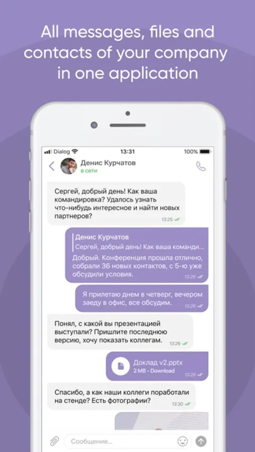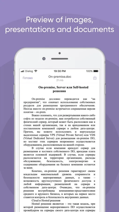 - exchange documents, presentations and photos without restrictions on the format and size of files;