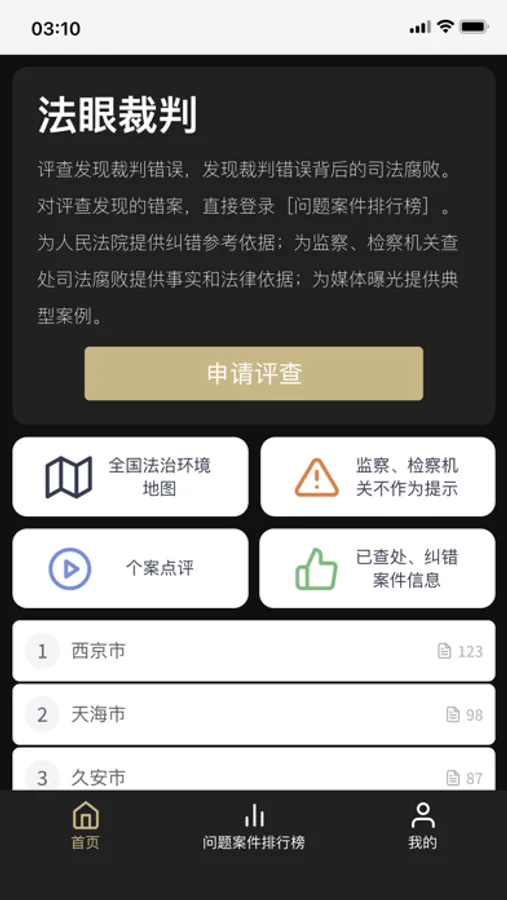 评查发现裁判错误,发现错误背后的司法腐败。对评查发现的错案,直接登录[问题案件排行榜]。为人民法院提供纠错参考依据;为监察、检察机关查处司法腐败提供事实和法律依据;为媒体曝光提供典型案例。