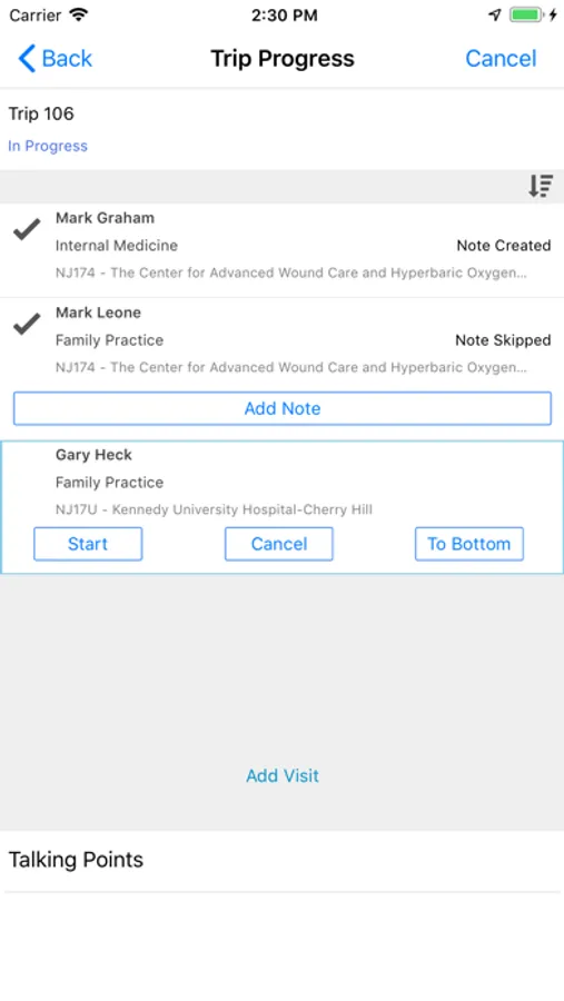 WoundSuite Navigator provides the ability to manage Physicians, Trips, and create activity Notes.