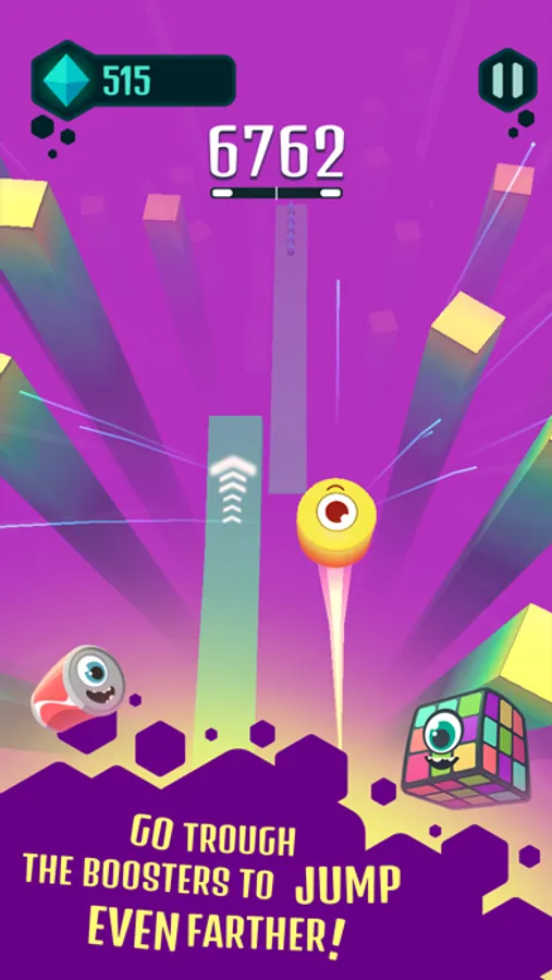 Collect all sorts of boosters that will help you jump further and avoid falling.
