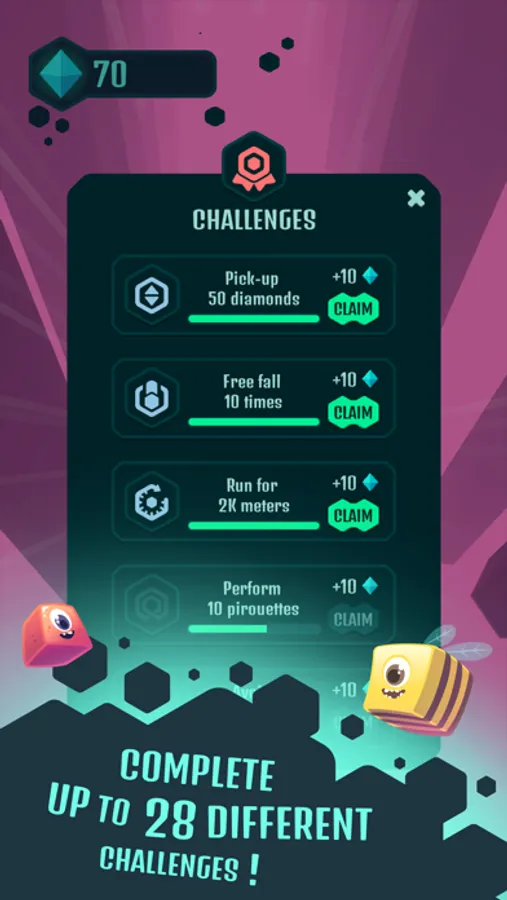 There are over 50 funny characters to unlock and 28 different challenges where you can test yourself for high scores.