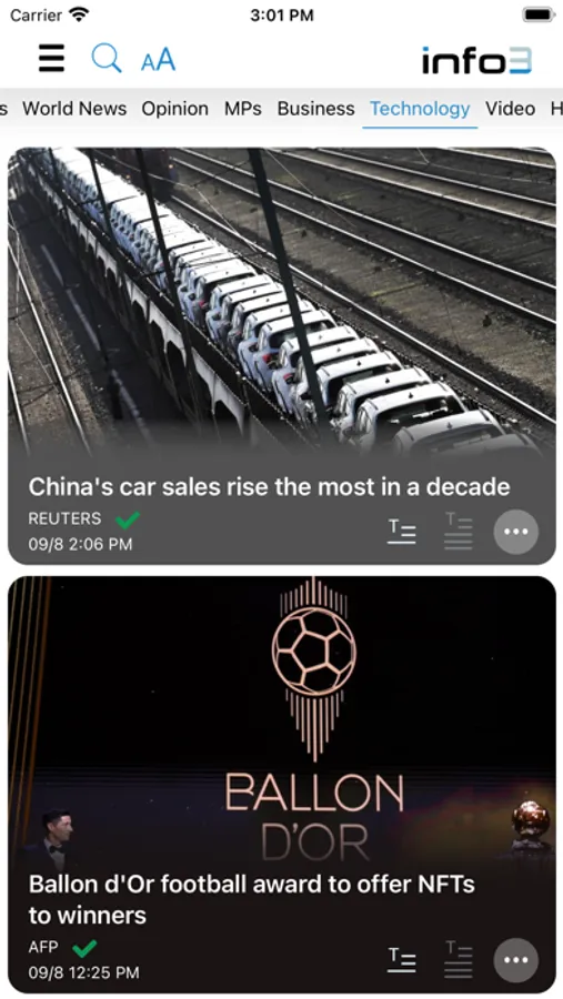No need anymore for several news apps installed on your phone! Info3 curates all important news from different sources