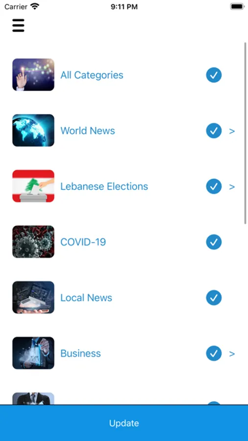 - Pick the categories you want to receive news from and dive deeper into the subcategories to specify what your interests are, for example, chose the all sports category to be informed about all sports news or pick the football and basketball category to receive news only from these 2 categories.