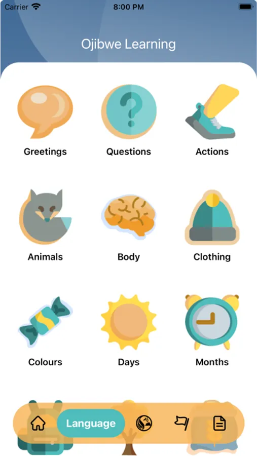 My suggestion is to not only display the English word but also the Ojibwe word in written form so that people can see how it's spelled while hearing it. Personally, I find it helpful to both see and hear a word in order to remember it, and having a visual reference can aid in proper pronunciation and understanding of the Ojibwe language in the future.