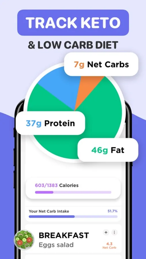 With a keto diet, it is very important to keep track and measurements of all nutrition you eat. Now, all your protein, fat, carbs, and net carbs are calculated and recorded automatically within the app system.