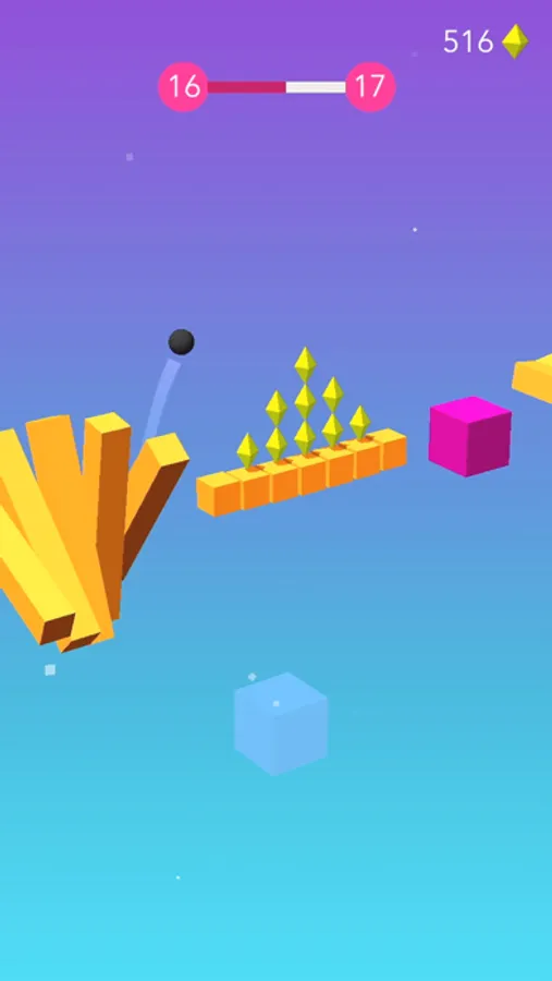 Enjoy this jump and run ball game for kids and grown-ups. Next to normal cubes, you can speed up in huge loops and splash colors when you hit the trampoline. Can you switch fast enough to still reach the next cube with the ball?