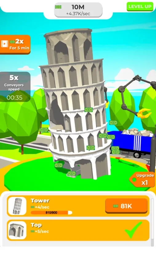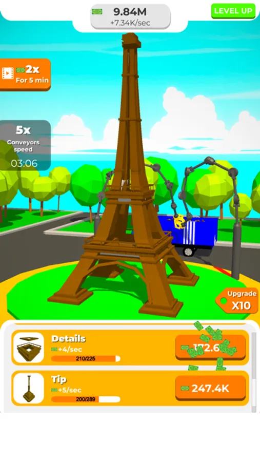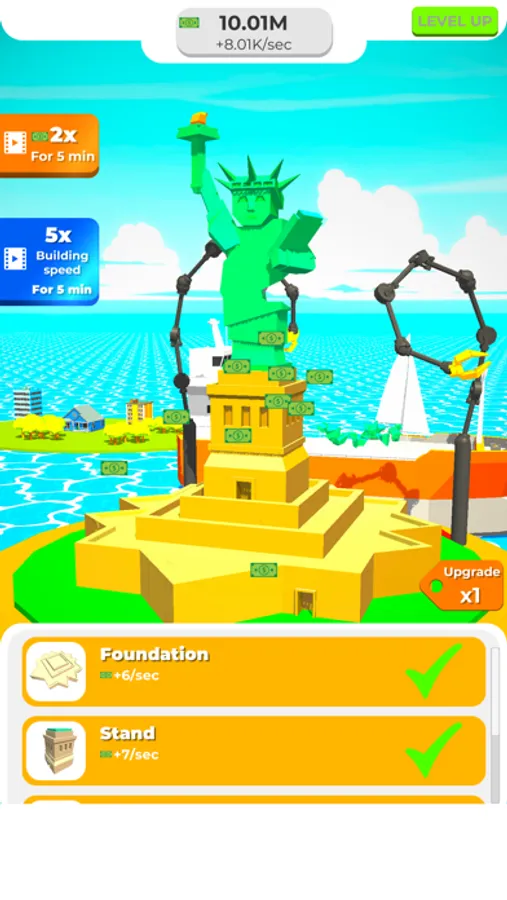 Welcome to idle landmark builder game! Idle Landmark builder - this is an amazing idle, tap and clicker game with elements of construction simulator. By using the two robotic and mechanic hands you can build the most famous landmarks around this world!