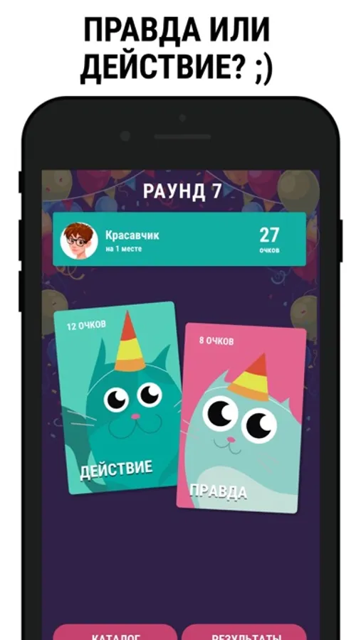 Мобильная версия игры Правда или Действие - легендарная игра для вечеринки, которая поможет весело провести время в компании друзей.