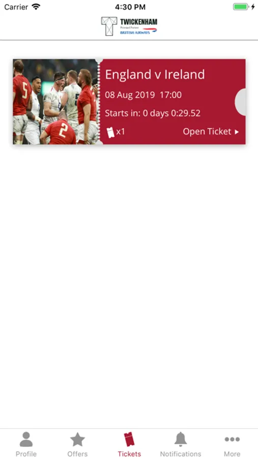 Your tickets are delivered instantly into your Twickenham Stadium App.