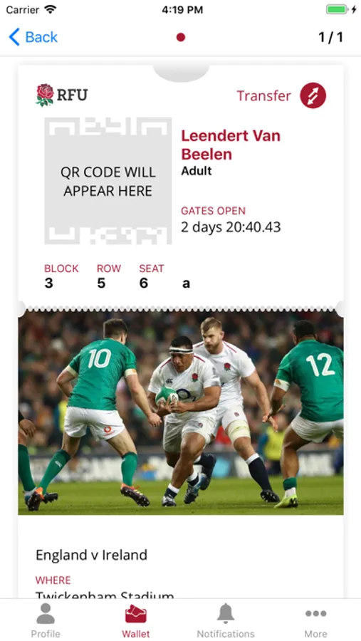 You can use the app to transfer tickets you have bought for friends to their Twickenham Stadium App.