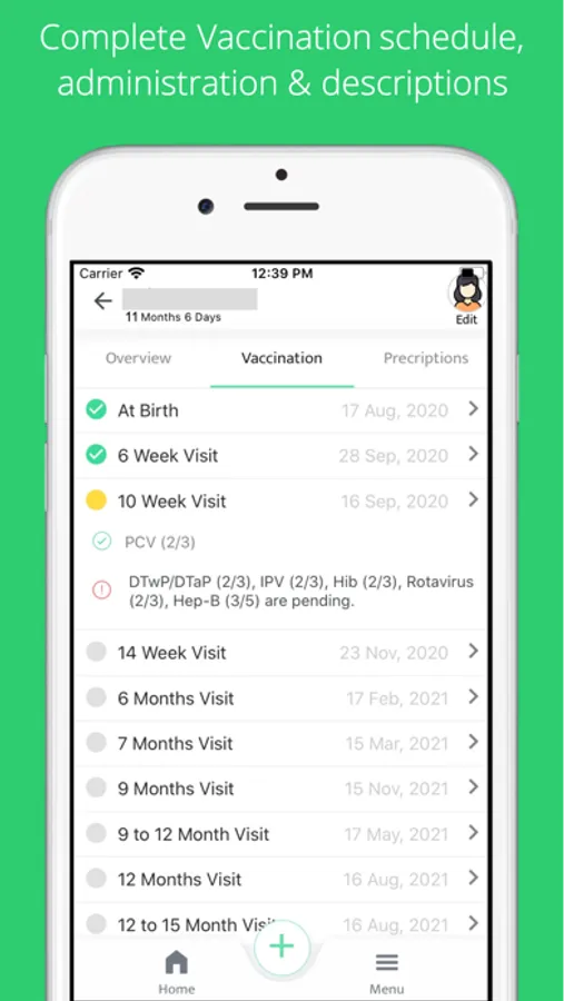 . Immunisation schedule with notifications for keeping in time track and helping in diseases free growth.