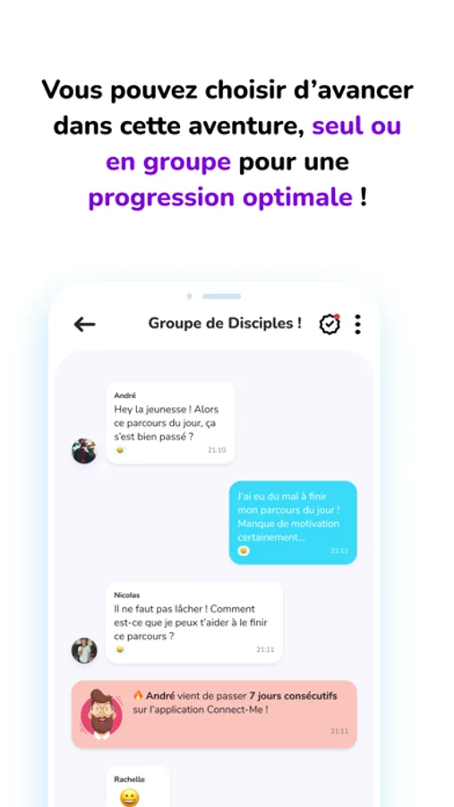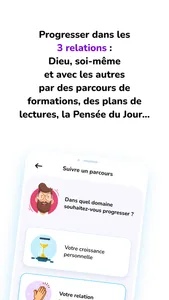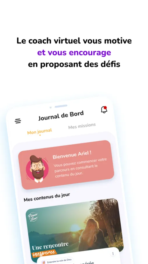 - Le coach virtuel vous accompagne et vous propose des défis pour grandir et mettre votre foi en action,