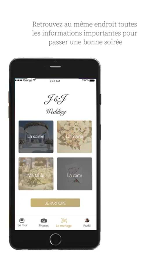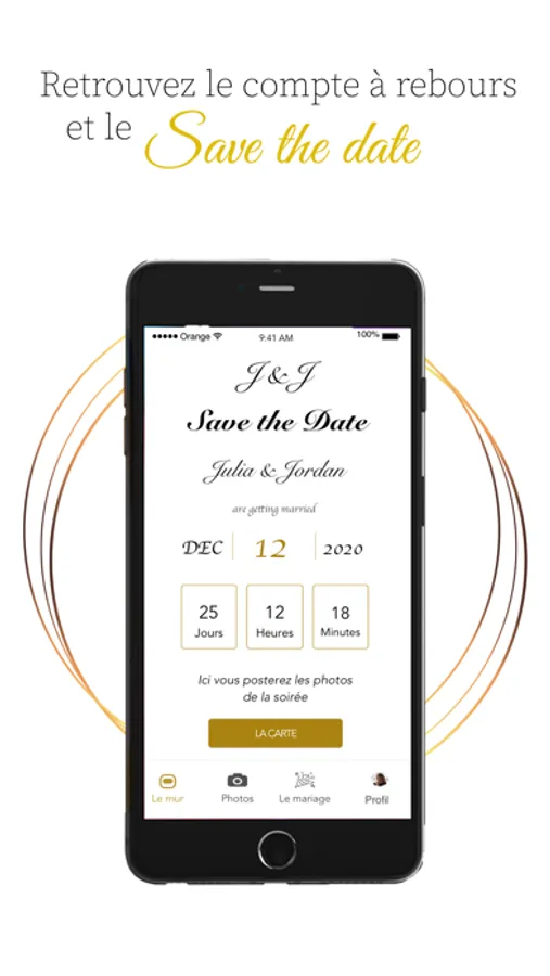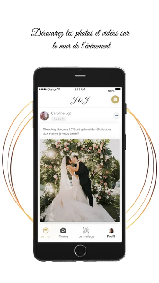 Your wedding will be unique, and the photos will be engraved on your application but also saved on your phone. They can be printed and shared.