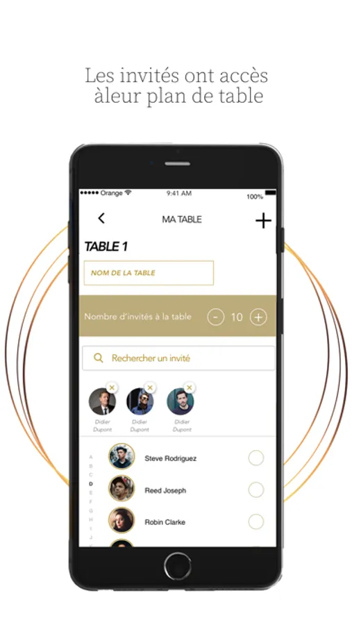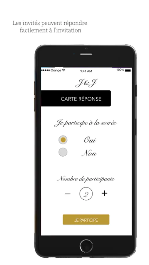 The guests receive the invitation directly on the app, can find their table, have all the information of the wedding in real time: how to get there with Waze, synchronize the date of the evening and the town hall on their agenda, and of course just answer the invitation in a few clicks.