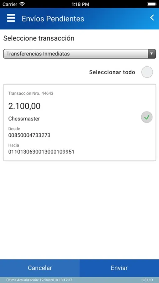 • Consultar saldos, movimientos conformados y del día y operaciones pendientes.