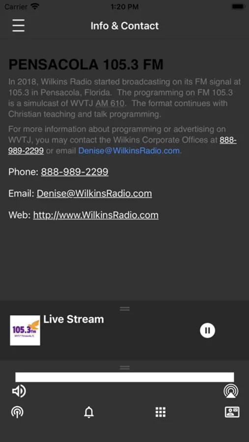 In 2018, Wilkins Radio started broadcasting on its FM signal at 105.3 in Pensacola, Florida. The programming on FM 105.3 is a simulcast of WVTJ AM 610. The format continues with Christian teaching and talk programming. For more information about programming or advertising on WVTJ, you may contact the Wilkins Corporate Offices at 888-989-2299.