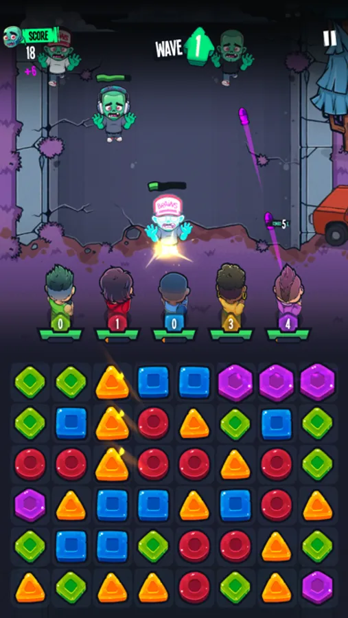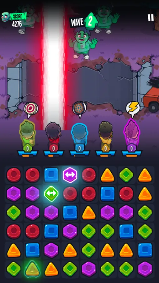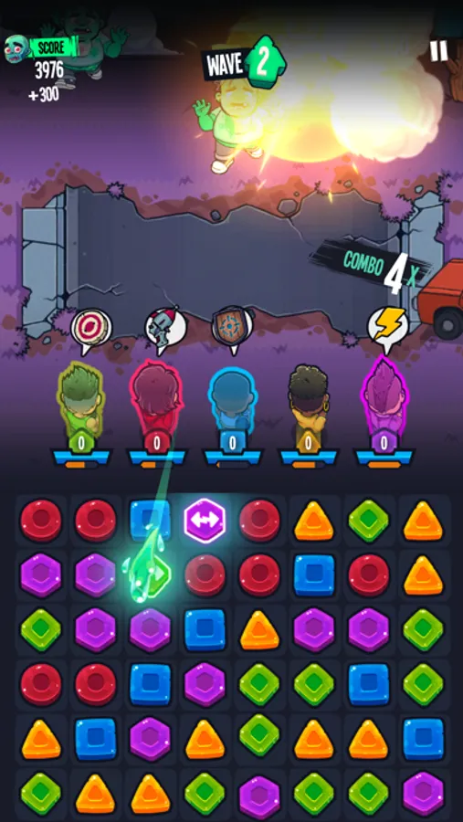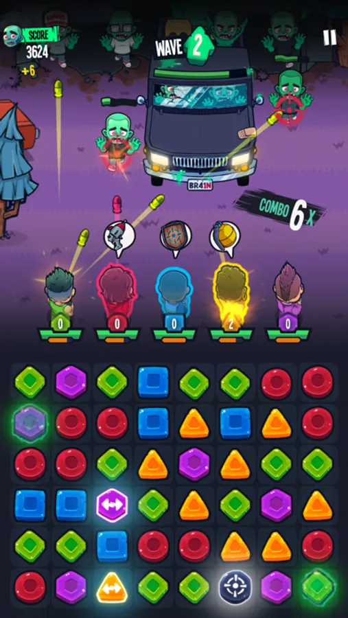 Your team is under attack and now you must defend your base. To defeat the zombies you must match the pieces to unlock special powers from your badass team.