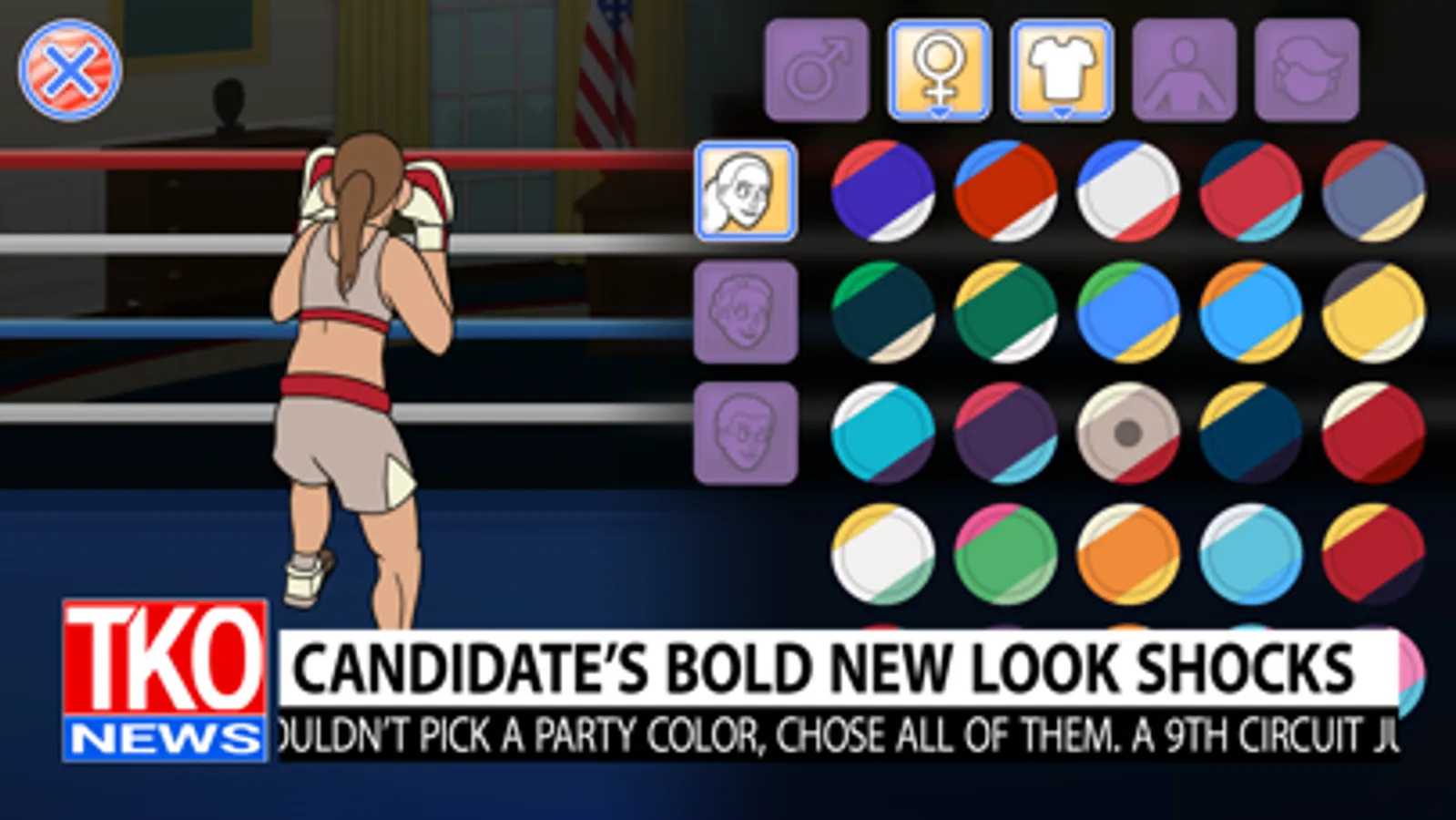 Create your own political party, lace up your boxing gloves, and punch your way to the White House in Election Year Knockout! In a country torn apart by its political divide, the nation has resorted to boxing to settle its differences. Fight your way through hilarious political opponents before squaring off with president Donald Thump himself!