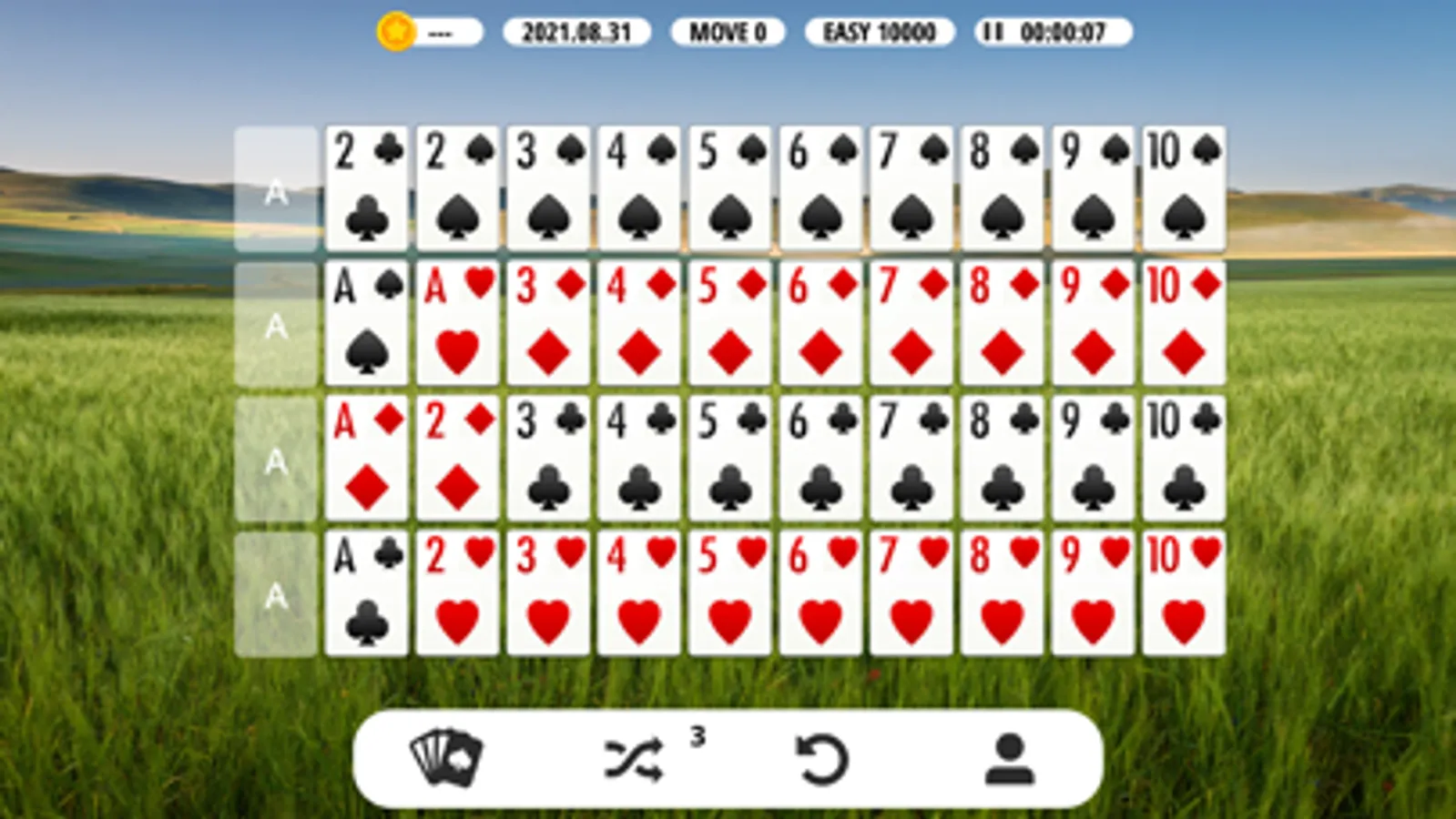 The goal of Addiction Solitaire is to arrange all of the cards in sequential order from Ace to King in the same suit. One card can fill a blank position but it needs to be greater in value and the same suit as the card found to it’s left.