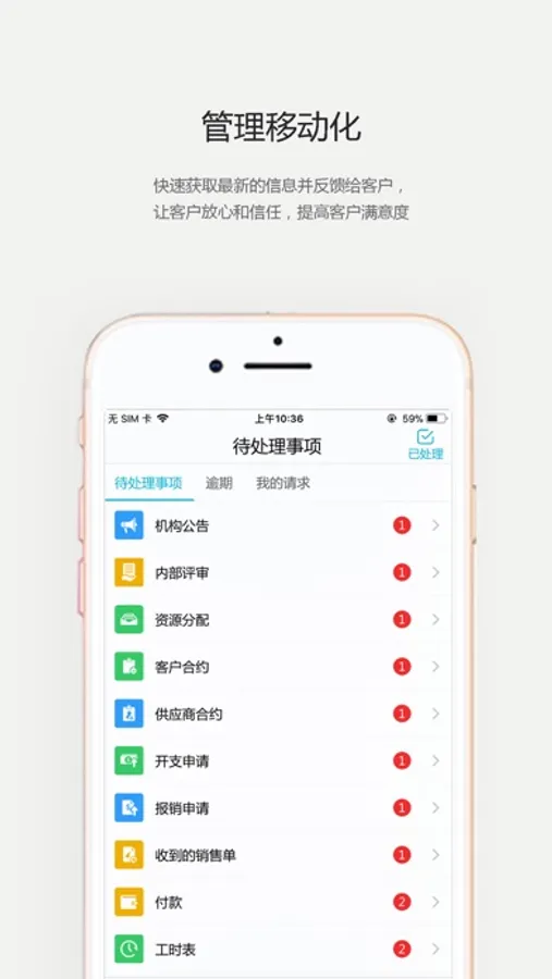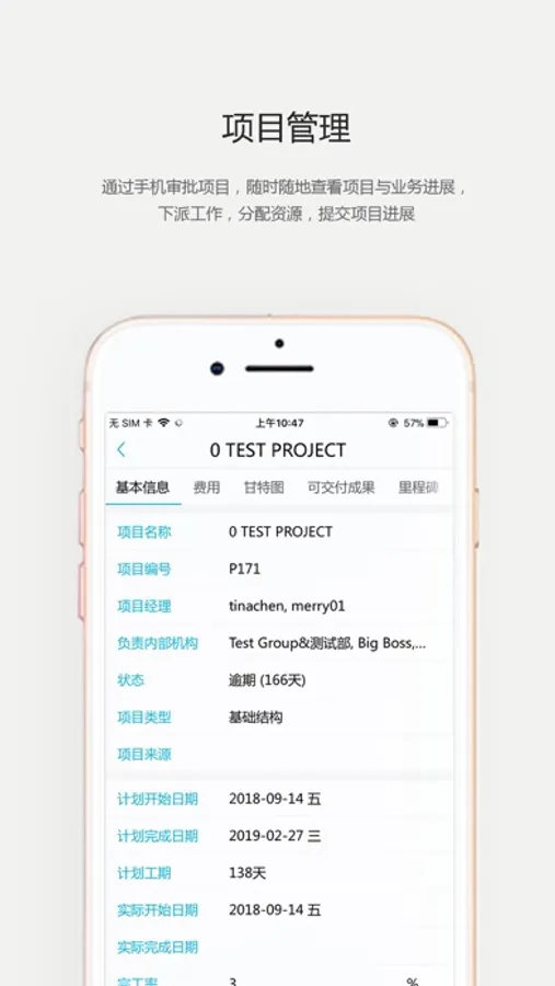 通过手机审批项目,随时随地查看项目与业务进展,下派工作,分配资源,提交项目进展