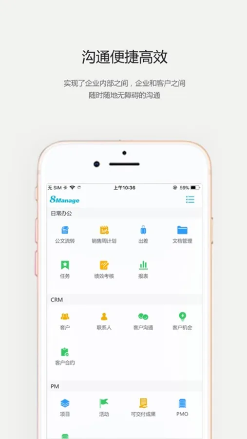 8Manage App 还提供全面的HR(人力资源管理),OA(办公自动化)和工时表管理。