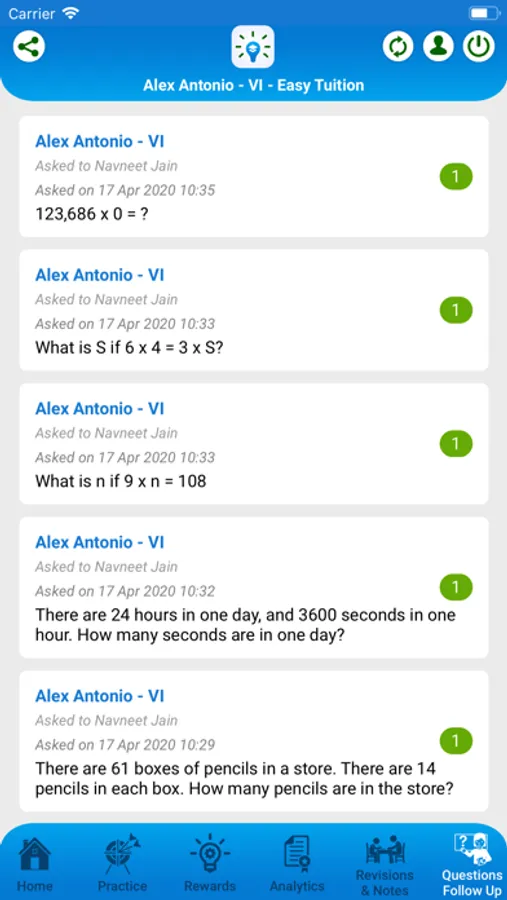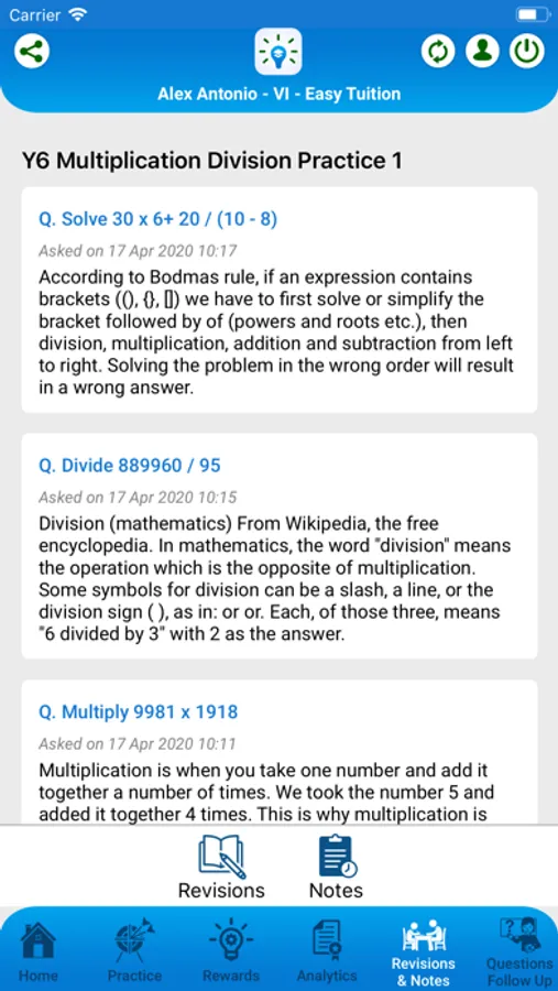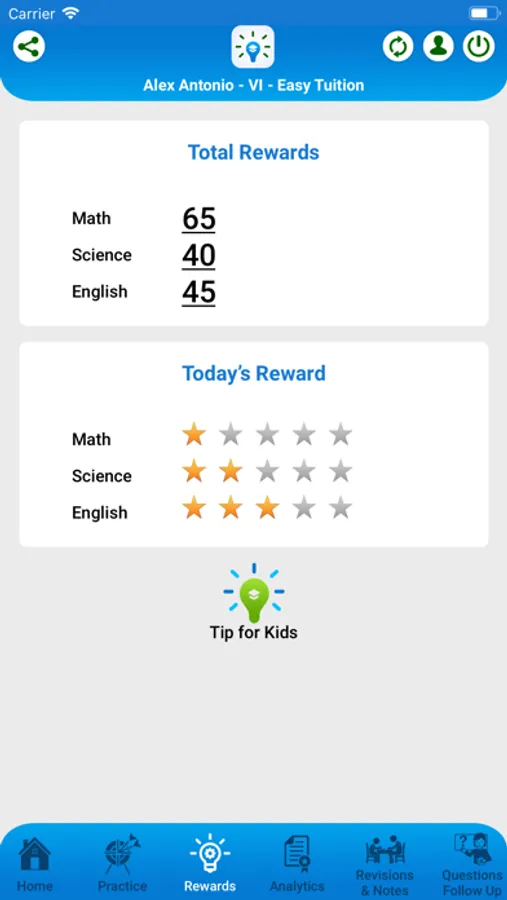 Using "Easy Tuition" app kids can revise the math, english and science concepts. They will be given lots and lots of practice questions and test and record their performance. It will then help to practice targeted concepts. At the same time, parents can also keep track of the concepts which needs extra help. In summary it is a great approach to stay in the top ranks.