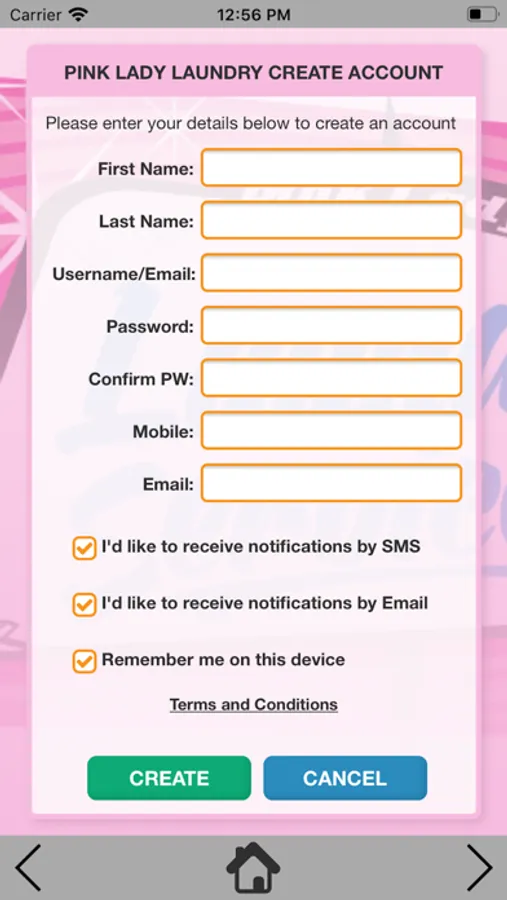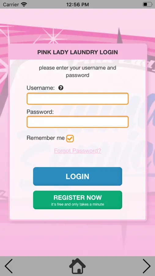 Customer Login app for Dry Cleaning (Pink Lady Laundry Services)